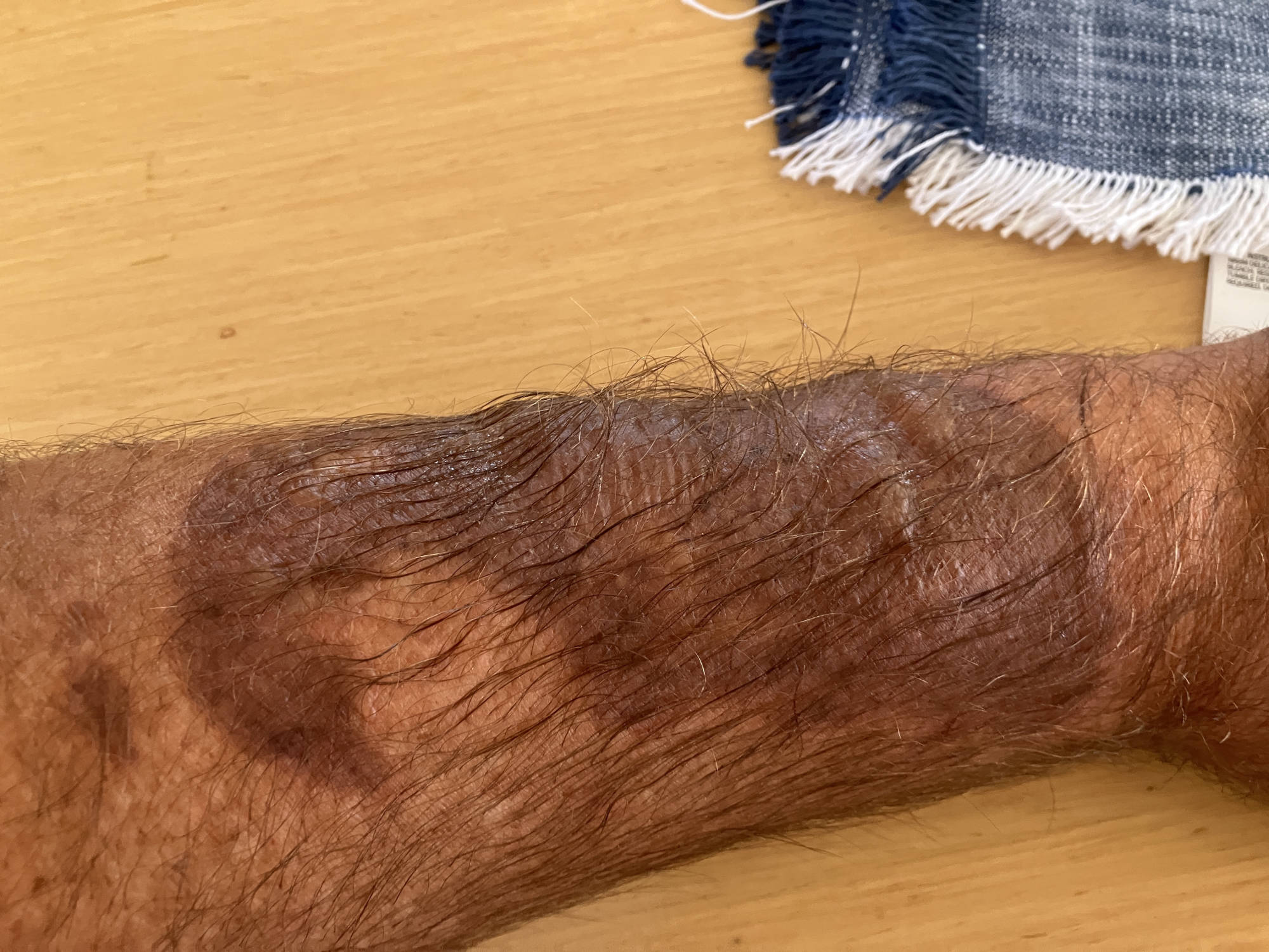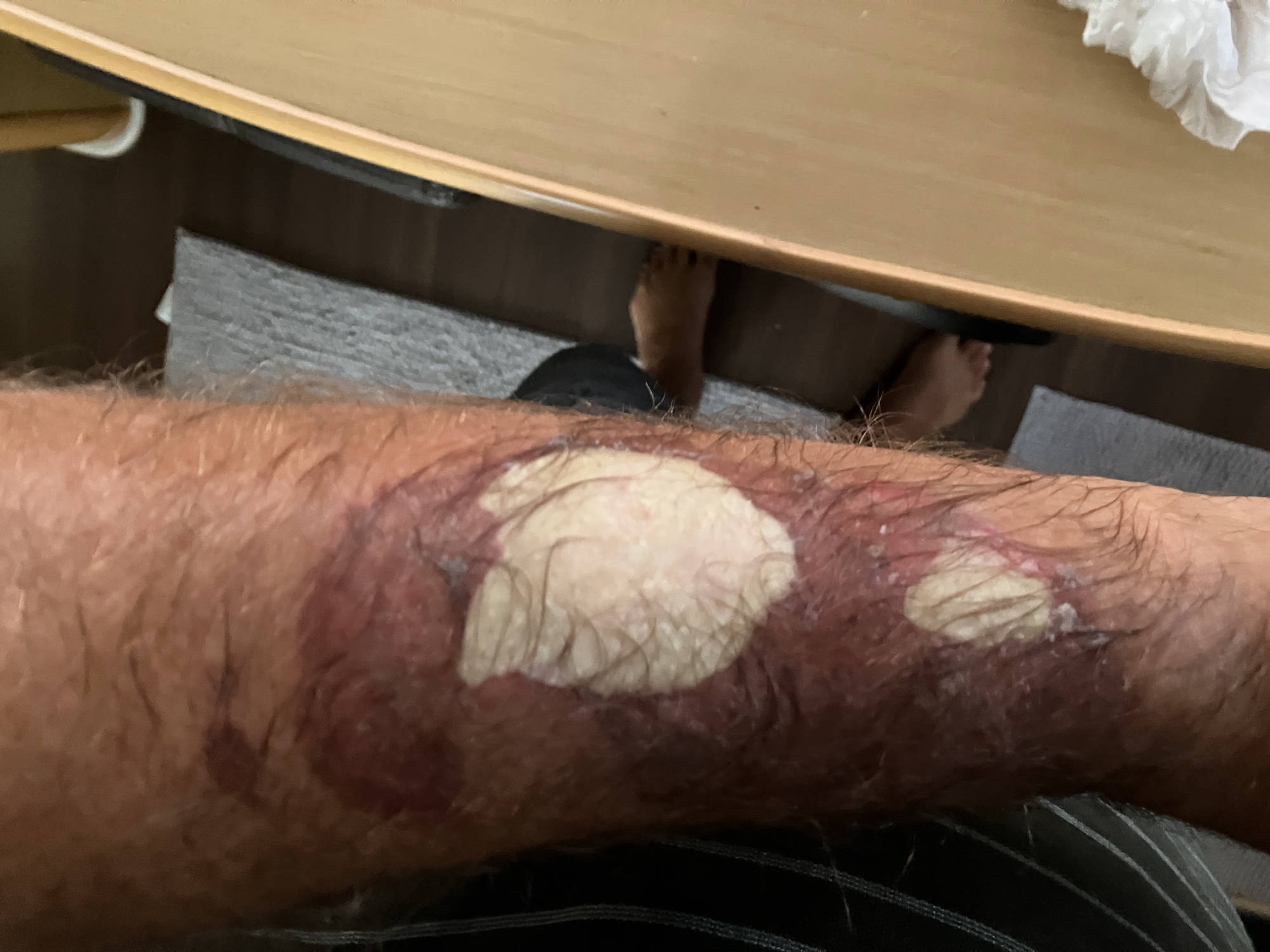 By the third day of the burn, we moved to a cream that had anaesthetic and anti-bacterial properties. This was amazing, to the point that I could feel very little discomfort. Over the ensuing three days, blisters had formed and in their own time, eventually popped.